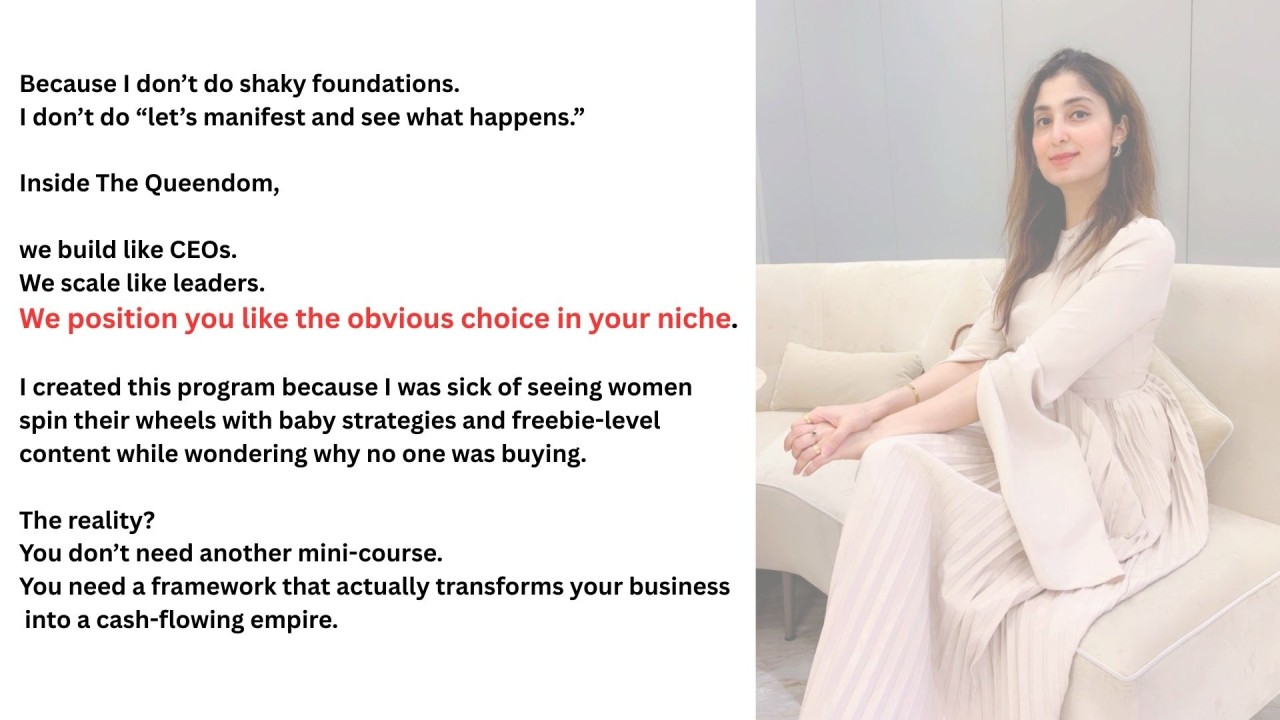 If you’re feeling the pull but have questions on your mind, DM me on Instagram [@iam_komalhassaan]. No pressure, I’ll help you figure out if The Queendom is the right move for where you’re at right now.